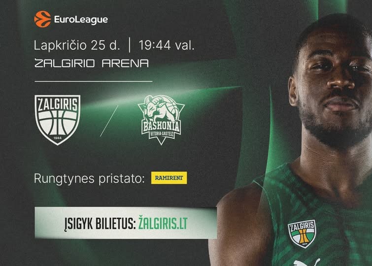 Kauno „Žalgiris“ tęsia „Eurolygos” sezoną namų arenoje, kur priims svečius iš Ispanijos – Vitorijos „Baskonia“.