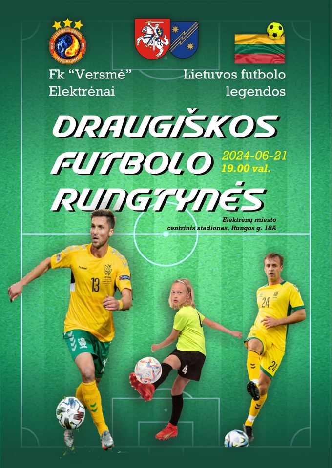 Draugiškos futbolo rungtynės su Lietuvos futbolo legendomis.