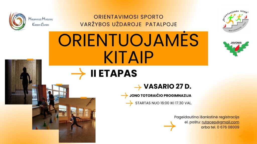 Vasario 27 d. antrasis Orientavimosi sporto varžybų patalpose „Orientuojamės kitaip” etapas, kuris vyks Marijampolės Jono Totoraičio progimnazijoje.