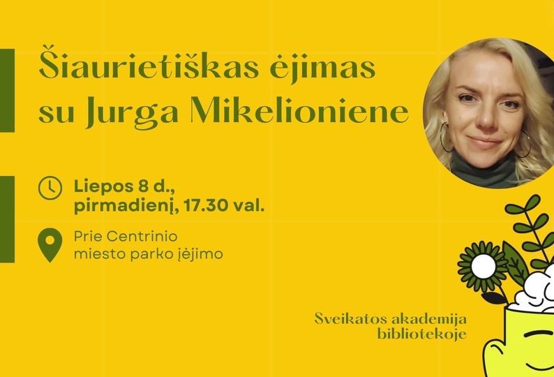 Liepos 8 d. 17.30 val. prie Centrinio miesto parko įėjimo šiauliečiai galės išbandyti šiaurietišką ėjimą su trenere Jurga Mikelioniene.