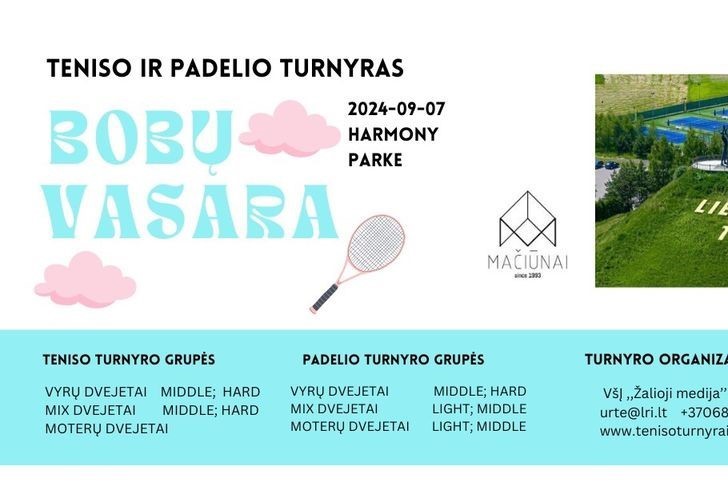 Tęsdami gražią tradiciją susitikime paskutiniams mačams lauko kortuose Harmony Parke. Pasitikime Bobų vasarą, apsupti nuostabios gamtos su teniso ir padelio raketėmis rankose.