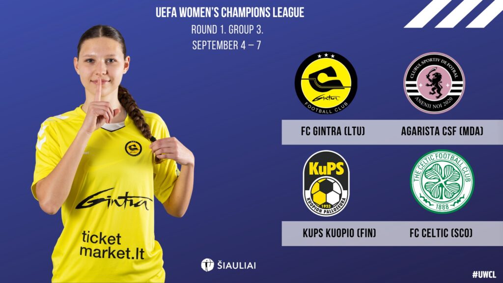 Lietuvos čempionė Šiaulių „Gintra“ dėl vietos prestižiniame Čempionių lygos turnyre varžysis su legendiniu Škotijos klubu Glazgo „Celtic“ bei Suomijos ir Moldavijos čempionėmis.